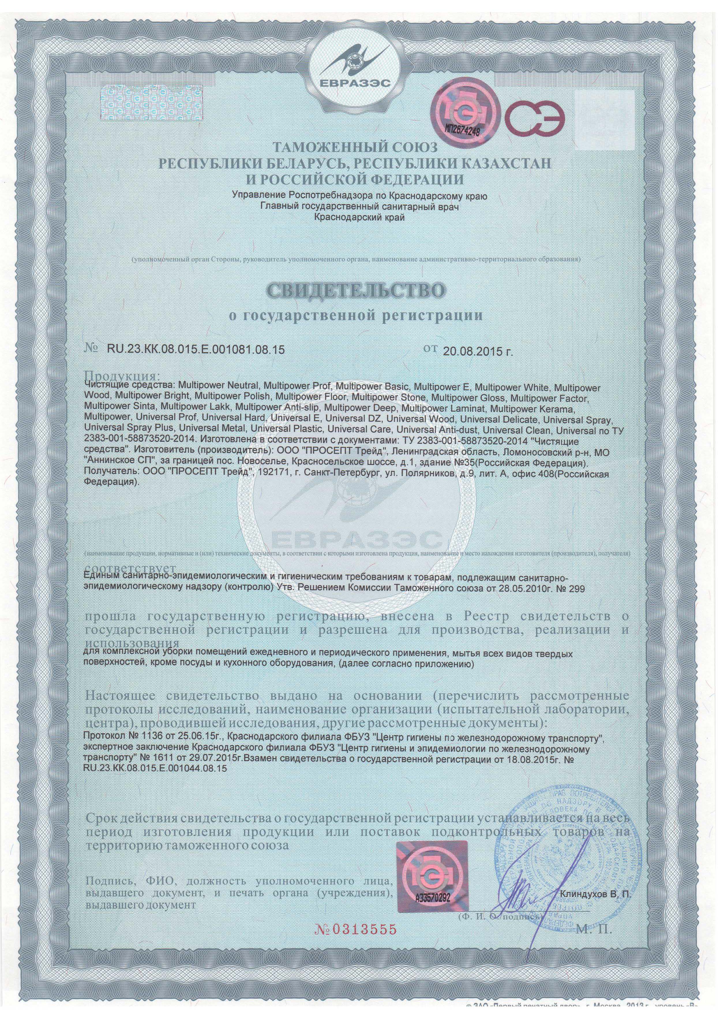 Область применения: средство предназначено для мойки полов и стен, столешниц и др. оборудования в помещениях организаций общественного питания (кафе, баров, ресторанов, столовых), торговых и деловых центров, медицинских, образовательных и иных учреждений, спортивно-оздоровительных и культурно-досуговых сооружений, предприятий промышленности, гостиниц и вокзалов, на всех видах транспорта и в быту.
